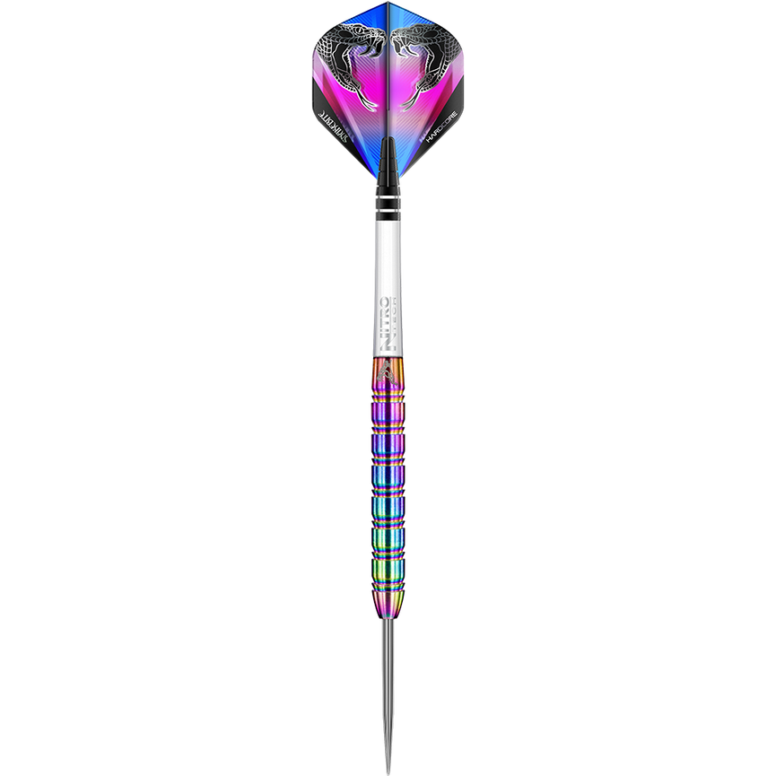 Die ONE80 Panther M Steeldarts bieten mit 90 % Tungsten einen hochqualitativen Barrel, der bei 25 g ein ausgewogenes Wurfgefühl gewährleistet. Mit einer Barrel-Länge von 46 mm und einem maximalen Durchmesser von 7,8 mm liegt der mittelgriffige Schaft sicher in der Hand. Die 2BA-Gewindebasis sorgt für Kompatibilität mit den Vice Shafts und unterstützt präzise Würfe – perfekt für ambitionierte Steeldart-Spieler, die Wert auf Balance und Kontrolle legen.