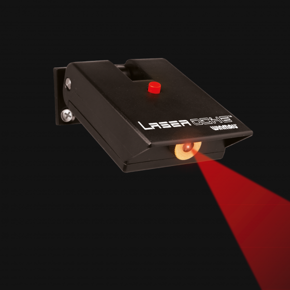 Kompakter Laser-Oche, lässt sich einfach an einer Wand oder einem Schrank befestigen Hi-Tech-Laserstrahl mit einstellbarem Linienabstand zur Markierung Ihrer Wurflinie Batteriebetrieben (Batterien nicht enthalten)