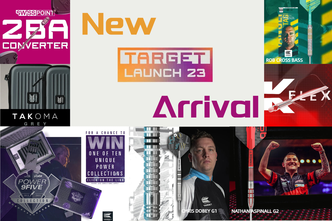 Darts , shafts , and other dart accessories : Our range includes steel tip darts and soft tip darts in various materials, weights, and designs, so there's something for every dart player. The most popular darts include Luke Littler G1 Prodigy Steel Tip Darts , One80 Strike Series, and Target Stephen Bunting G5 90% Swiss Steel Tip Darts .