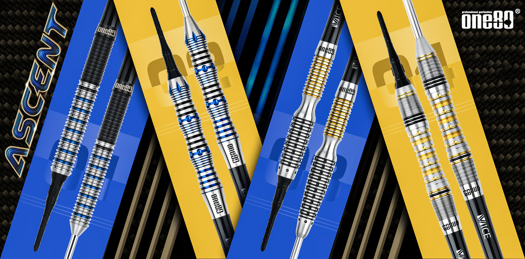With the new Ascent series, One80 is expanding its range to include special dart shapes. This series varies from frontloaded to the classic parallel shape and is defined by convex grip zones and intricate grip patterns. The Ascent is rounded off with a two-tone titanium coating, which gives it a stunning look.
