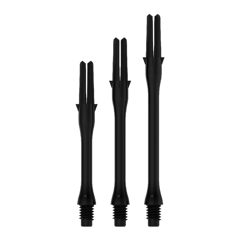 The Harrows Carbon 360 shafts are particularly durable thanks to a robust polycarbonate body and a robust carbon fiber swivel top. Their unique profile improves aerodynamic resistance and the replaceable carbon fiber tops are firmly attached to the main body and do not rotate freely or rattle. Available in 6 eye-catching colors and medium, midi and short.
