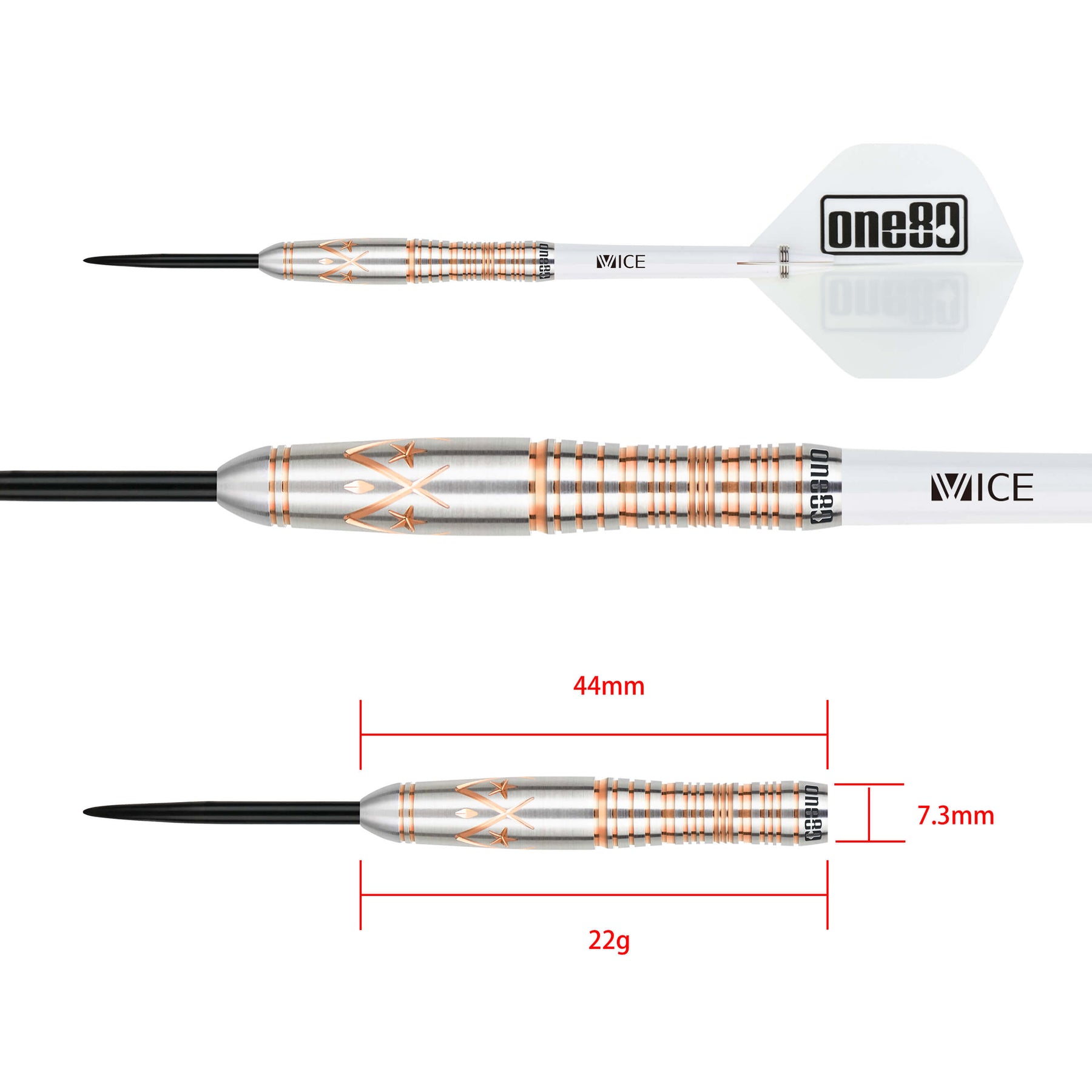 Mit einem Gewicht von 22g, einem Durchmesser von 44mm und einem Spitzen Durchmesser von 7,3mm gewährt die Alice Law III Rosegold Stahlspitz-Dart eine ausreichende Gewichts- und Stabilität, während gleichzeitig Flexibilität und Balance bei der Wurfhandlung berücksichtigt werden. Ob es um präzise Steuerung oder starke Durchdringungskraft geht, sie bietet eine perfekte Darstellung.