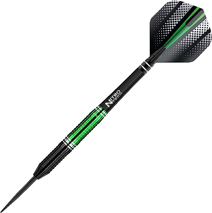 Razor Edge ZX-2 was developed from the best 85% tungsten, which enables a particularly stable and slim handle. The ZX-2 dart features two perfect blade grips on the front and back of the dart, with a subtle ring break in the middle for a perfect grip position. The ZX-2 dart has a perfectly tapered head and a parallel profile that easily outperforms other darts. This almost superheroic look is underlined by the black/green PVD coating.